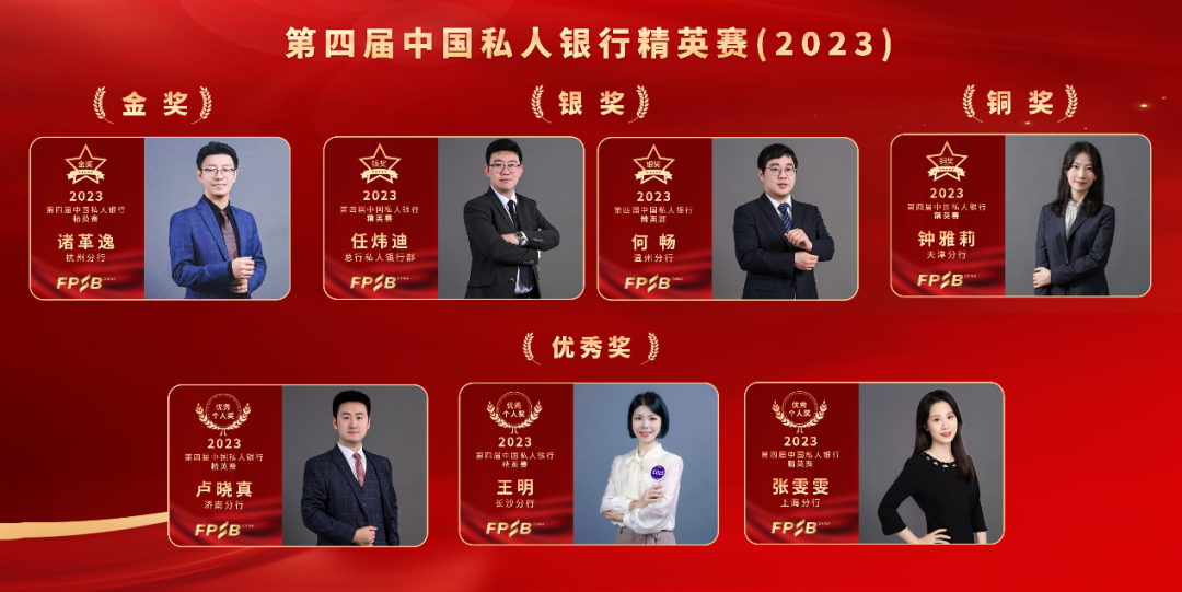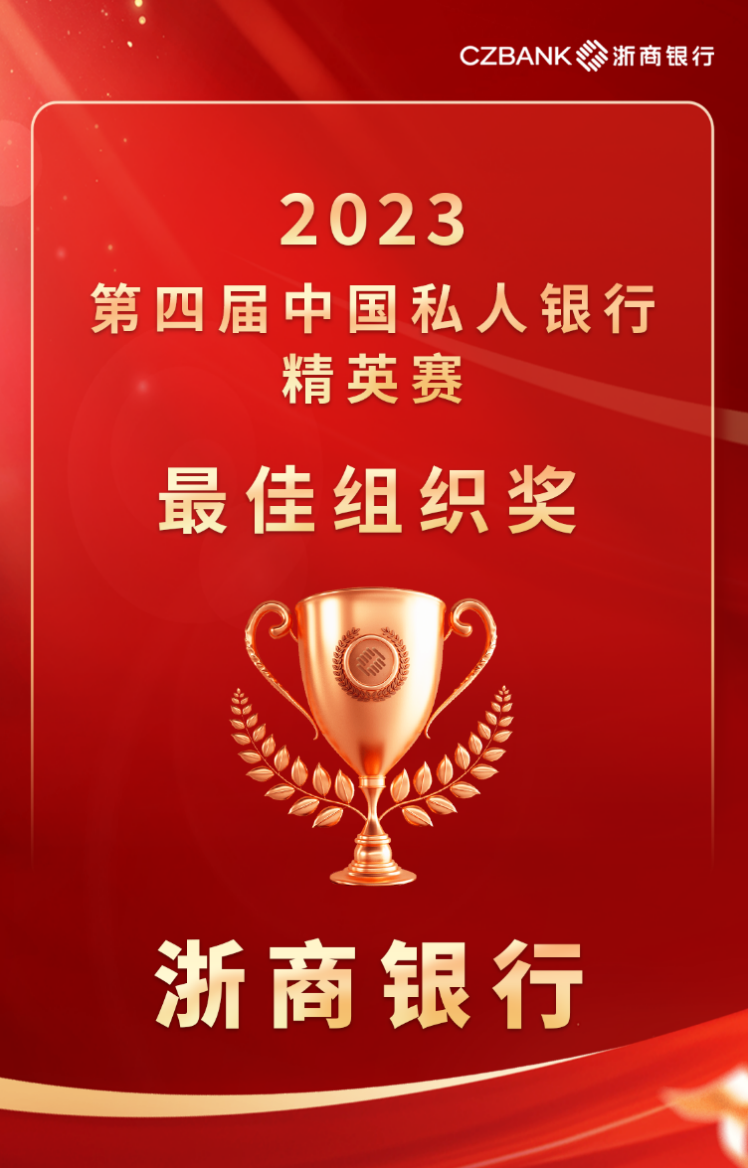 10月9日,第四届中国私人银行精英赛(2023)决赛结果公布。浙商银行荣获“最佳组织奖”;7名选手进入个人赛决赛,最终荣获金奖1名、银奖2名、铜奖1名、优秀奖3名的好成绩。