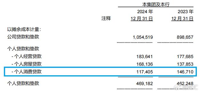 这种下降似乎来自2024年下半年。浙商银行在2024年上半年末的个人消费贷款余额为1369.82亿元,但是到了年末仅剩下1174.05亿元。