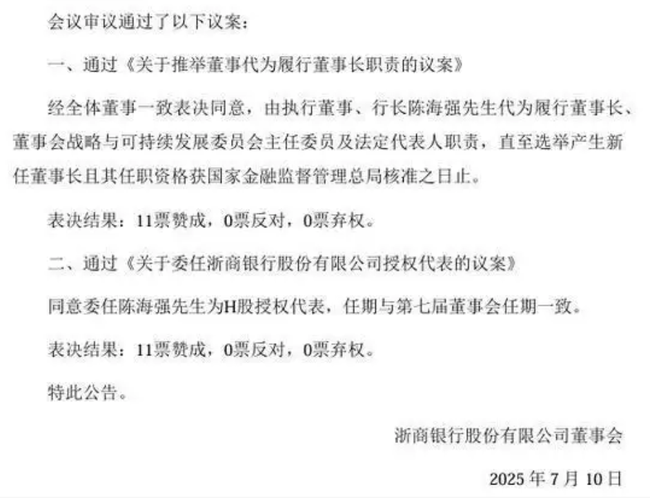 浙商银行近期迎来一场备受瞩目的权力交接。2025年7月,董事长陆建强因年满60岁到龄辞任,结束了三年半的掌舵生涯;与此同时,刚获监管批复行长任职资格的“70后”陈海强,以行长身份代为履行董事长职责,成为这家总资产超3.4万亿元的全国性股份制银行的临时“双料掌门”。
