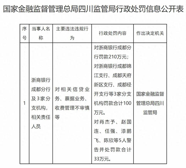 公告发出五天前的12月27日,浙商银行成都分行及下属支行因为信贷与票据业务违规被罚共310万元。加上这张罚单,浙商银行2025年内被罚没金额累计超过了4200万元。