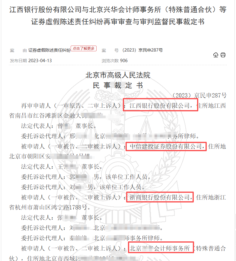 如今债券全部违约,底层出资方吉林银行最终选择起诉发行的中介方——浙商银行、券商、及会计事务所,追究“证券虚假陈述责任”。但近期的二审,依然未获得法院支持。