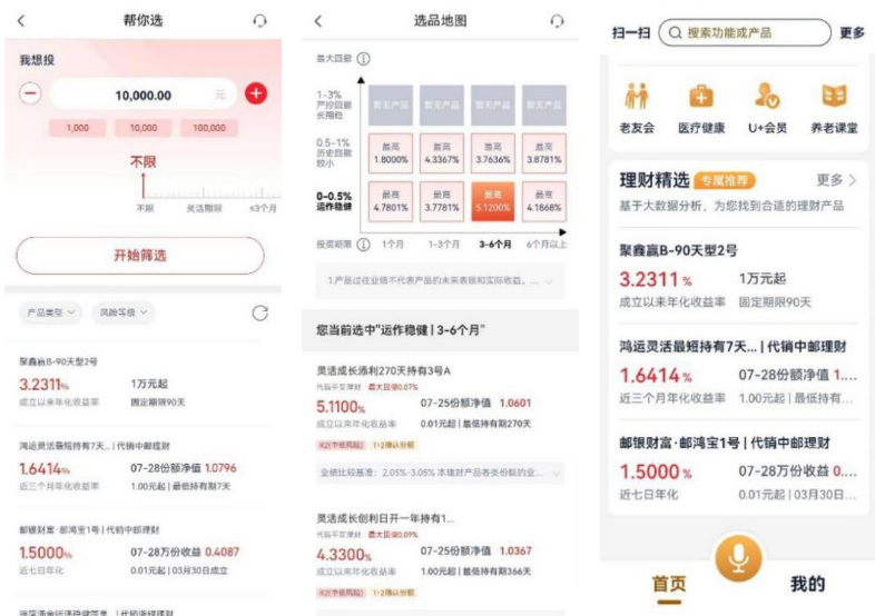 “帮你选”、“选品地图”、理财精选等数智赋能银龄财富管理