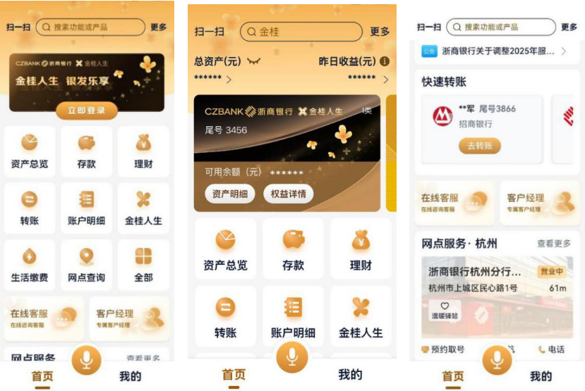 首创“金桂专栏”适老专区,整合“银发专属理财+医疗健康+携程老友会+养老课堂”四大场景,结合“金桂人生”开展线上线下服务、活动、权益融合,形成“财富管理-生活服务-社交陪伴”全链路服务。其中,银发专属理财风险较低、收益稳定,满足了老年客群特定的投资需求、心理安全感以及风险承受能力;探索携程合作业务模式,以携程“老友会”品牌为切入点,联合打造“浙商银行×携程老友会”专享活动,在定制线路、老友会专享产品、高端客户旅行权益等方面开展合作,满足老年客群出游社交需求。