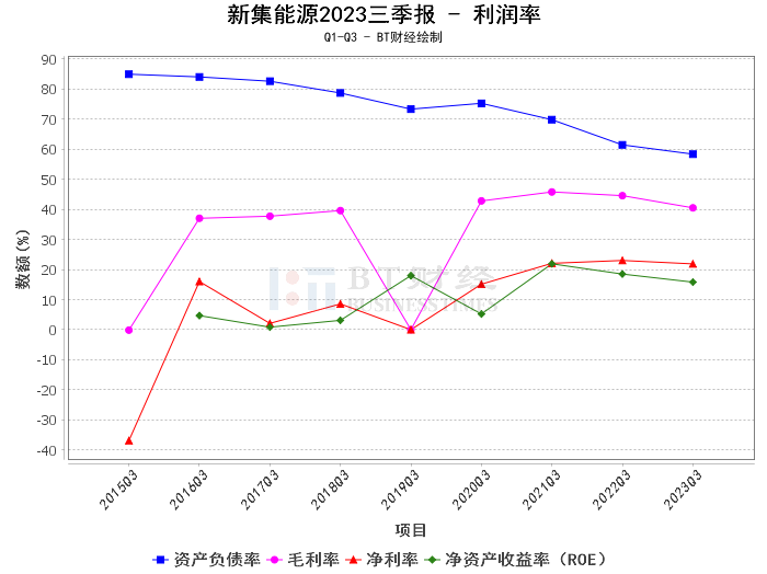 总的来说,新集能源在2023年三季度的财务表现总体稳健,净资产和净利润均有所增长,资产负债率有所下降。但是,公司的毛利率和净利率有所下降,资产收益率(ROE)也有所下降,这表明公司在未来需要进一步提高营业效率,提高盈利能力,以提高公司的财务表现。