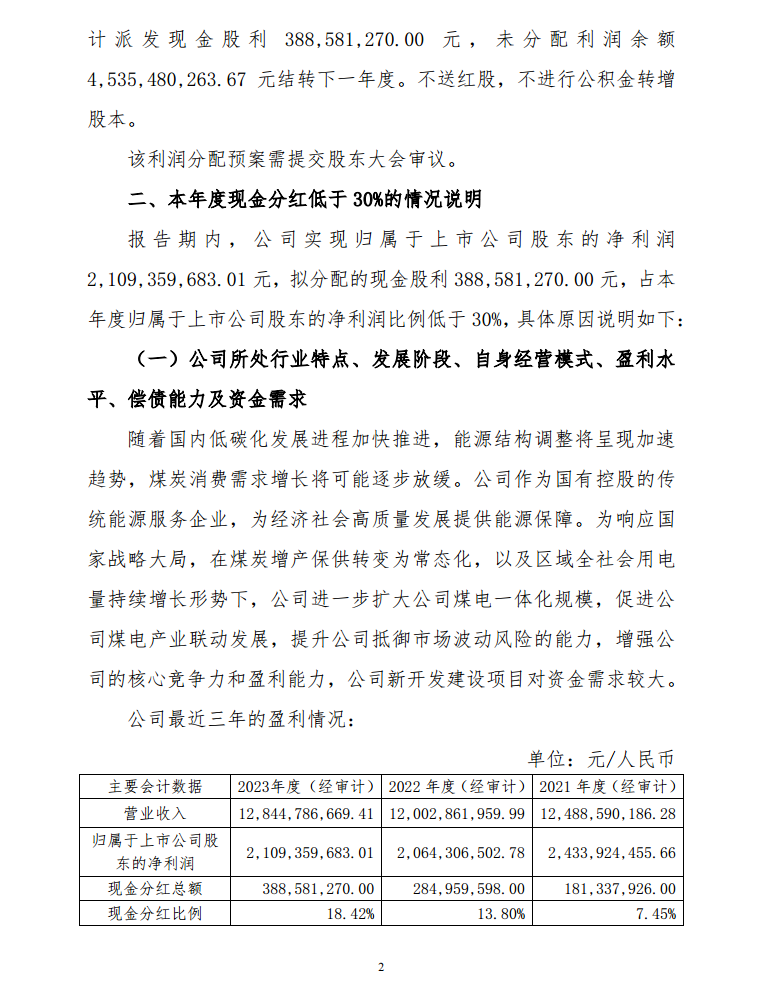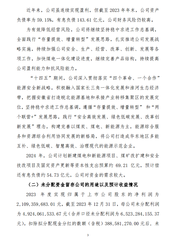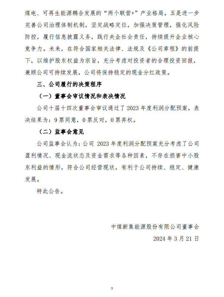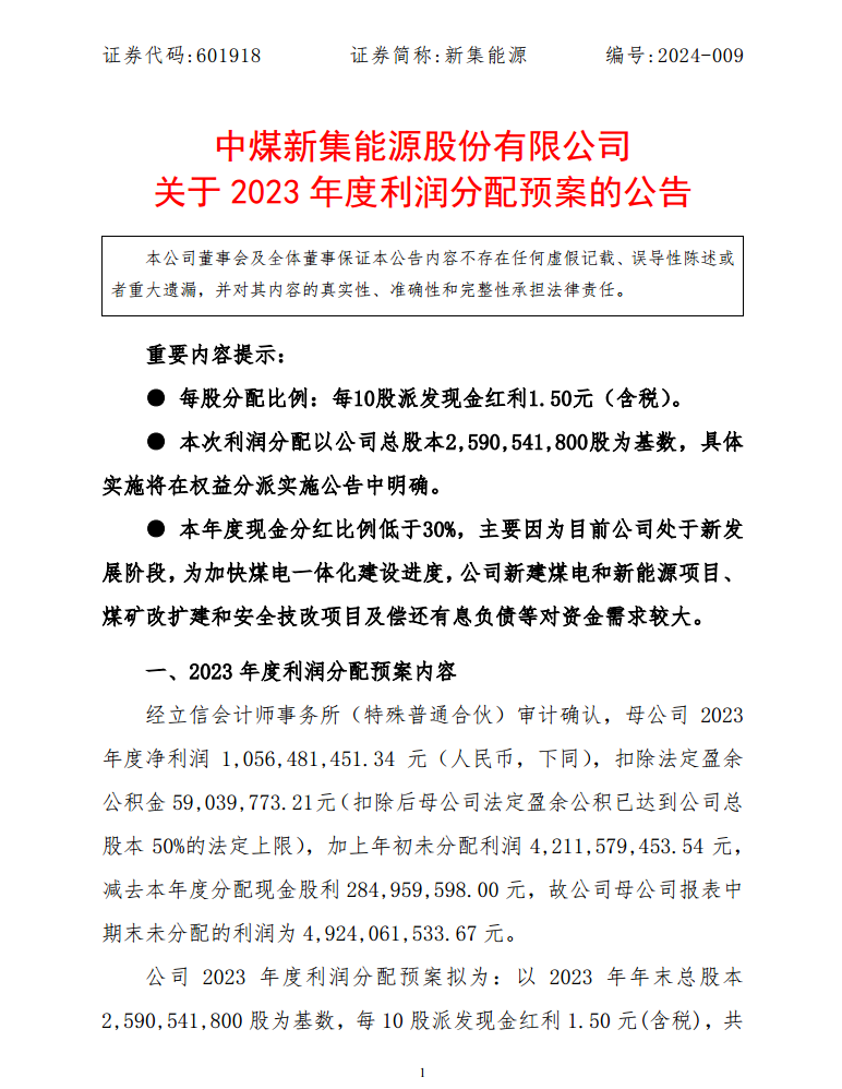 近日,新集能源发布关于2023年度利润分配预案的公告。
