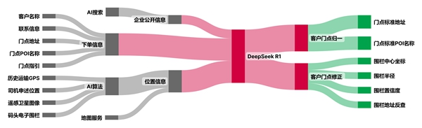为更好地修正智能助理-客户门点场景中人工复核效率,团队创新性开发时空轨迹+地理语义智能修正模型。通过对海量相关时序数据的挖掘,结合DeepSeek R1模型对客户名称、地理要素及周边POI(Point of Interest)的高阶语义解析能力,成功搭建地理要素关联模型,实现客户真实门点信息的智能获取。在现阶段的试点中已显著提升物流路径优化数据支撑的精准度。