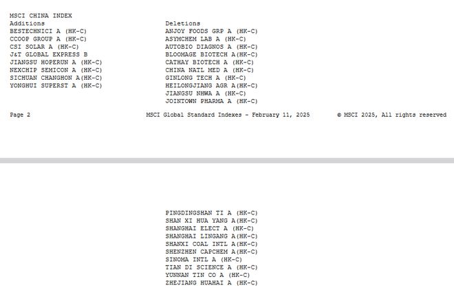 中新经纬2月12日电 2月11日,明晟公司(MSCI)公布了2月份指数审议结果。其中,MSCI中国指数进行了调整。