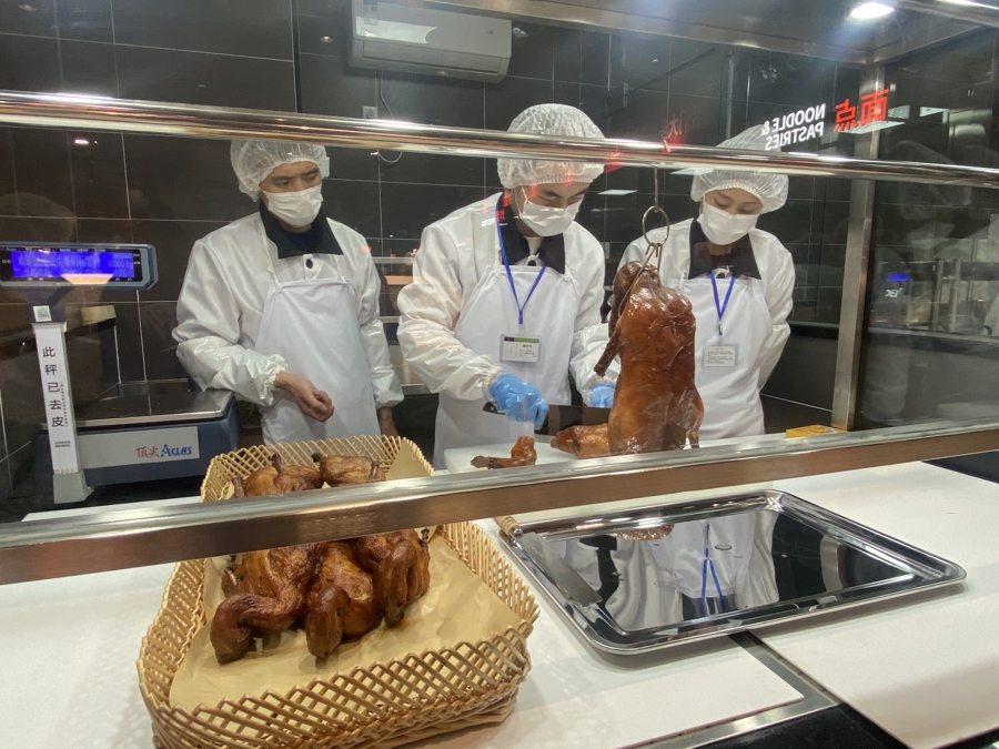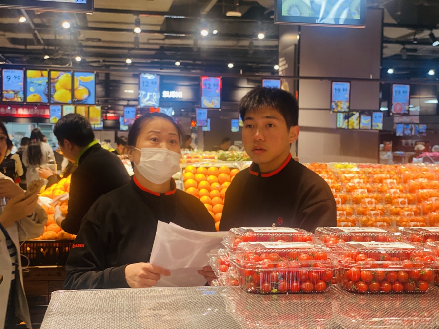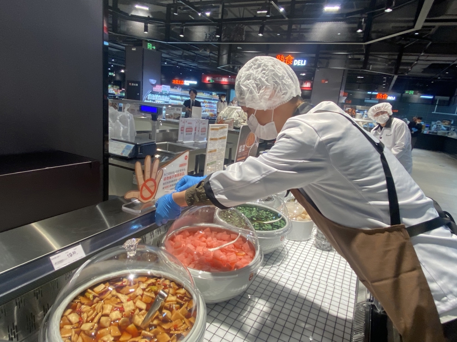 新民晚报记者在店内看到,对于消费者的关怀则体现在细节中。例如,调味品区增设放大镜方便老年客群,散装糖果标注“每斤约30颗”解决选择焦虑,果切盒按甜度标注食用顺序,海鲜柜台提供清洗、打氧服务,肉禽柜台免费提供切丝、绞肉等服务。店内还设置了试穿拖鞋的专用鞋套、剖鱼间、易碎品打包处以及海鲜打包加冰处。