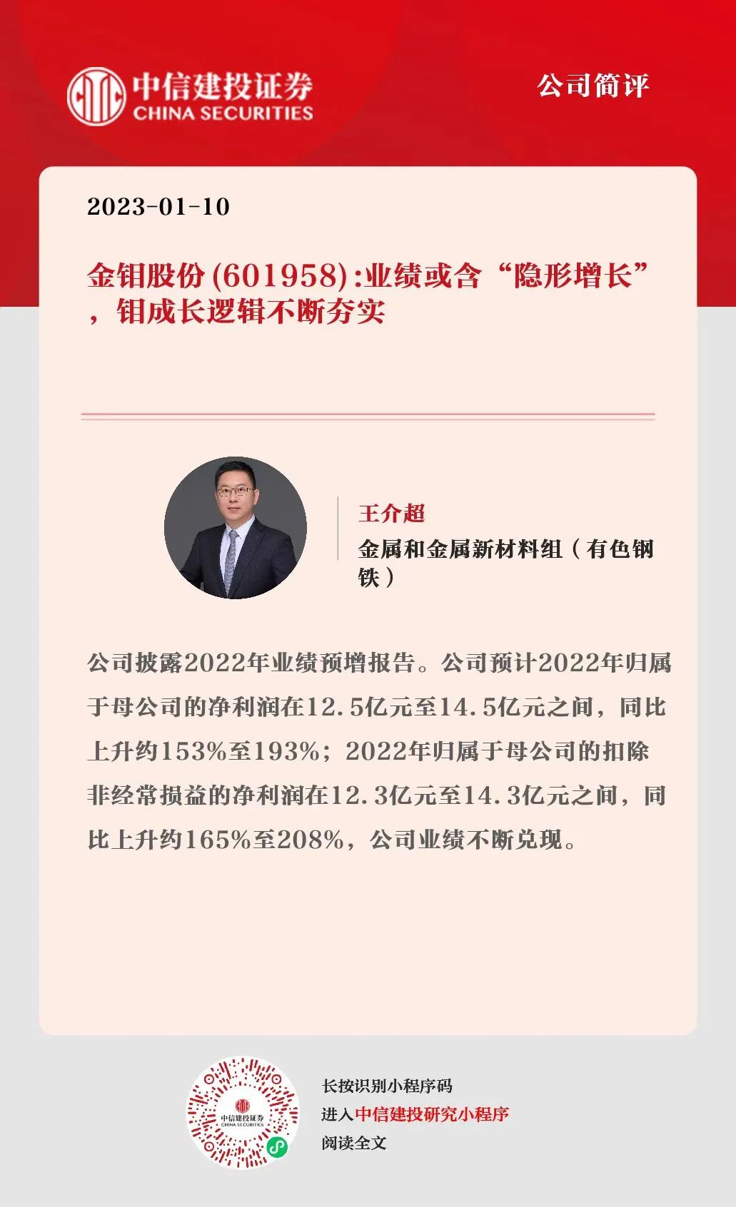 1.公司预计2022年归属于母公司的净利润在12.5亿元至14.5亿元之间,同比上升约153%至193%,公司Q4业绩2.88亿-4.88亿。