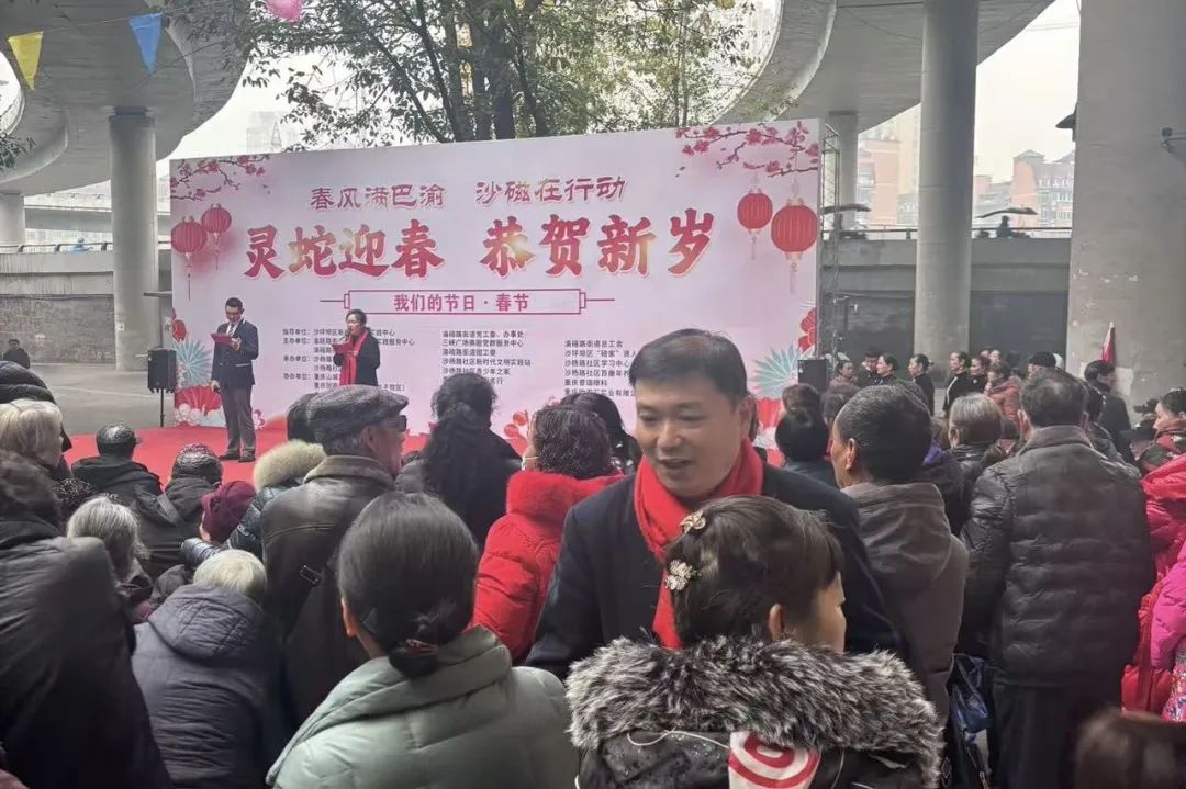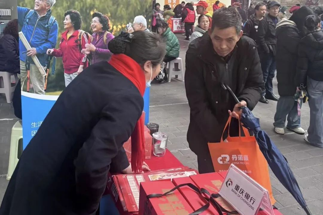 新春来临之际,渝中支行联合红球坝社区在大礼堂广场开展新春送福活动。
