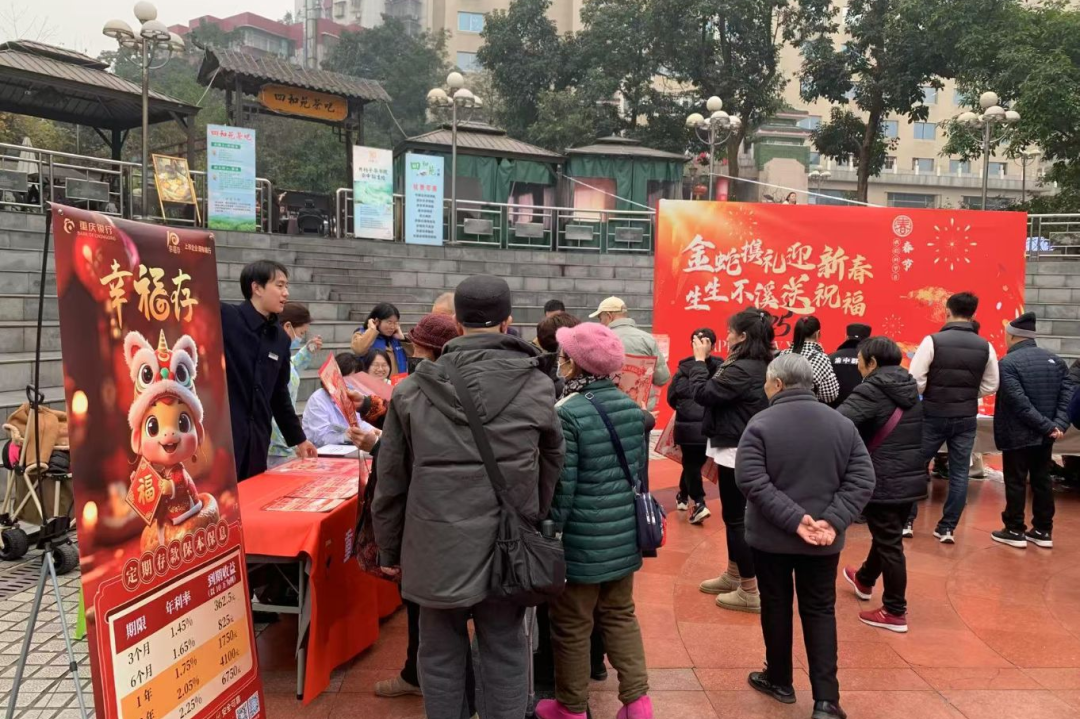 新春佳节来临之际,成都分行下辖成华支行开展厅堂营销活动。