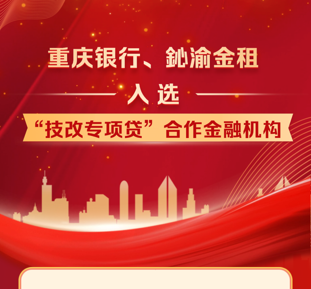 近日,重庆市经济和信息化委员会正式公布“技改专项贷”第二批合作金融机构名单,重庆银行成功入选重庆市“技改专项贷”合作银行,是已发布的两批合作金融机构中唯一入选的城市商业银行,集团子公司鈊渝金租也成功入选重庆市“技改专项贷”合作融资租赁机构。