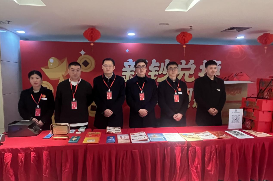 支行工作人员在客户单位以现场兑换新钞、发放新春礼包为契机,通过设置咨询台、发放宣传资料、现场讲解等方式,向客户详细介绍我行的各项金融产品和服务。