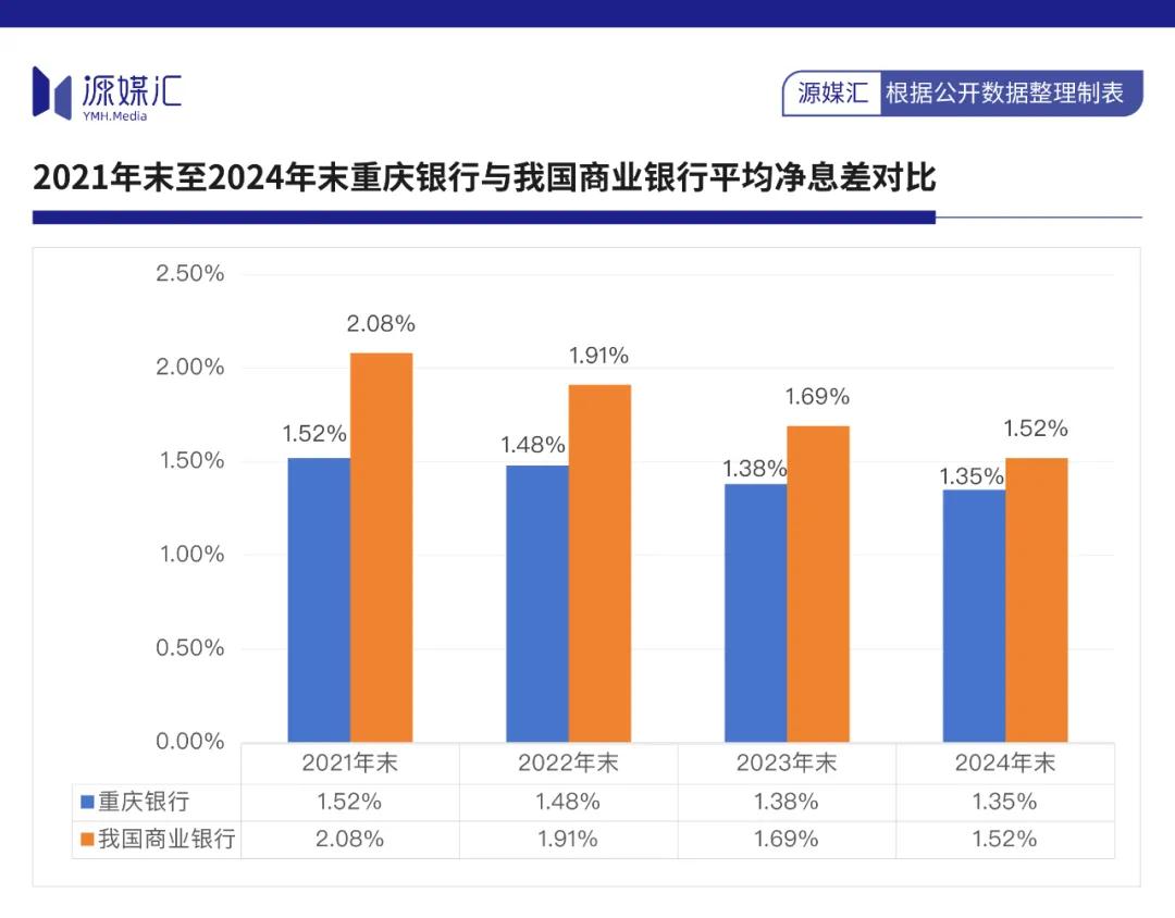 数据显示,2021年至2024年,重庆银行的利息净收入分别为115.97亿元、108.08亿元、104.47亿元、101.76亿元,持续下滑。