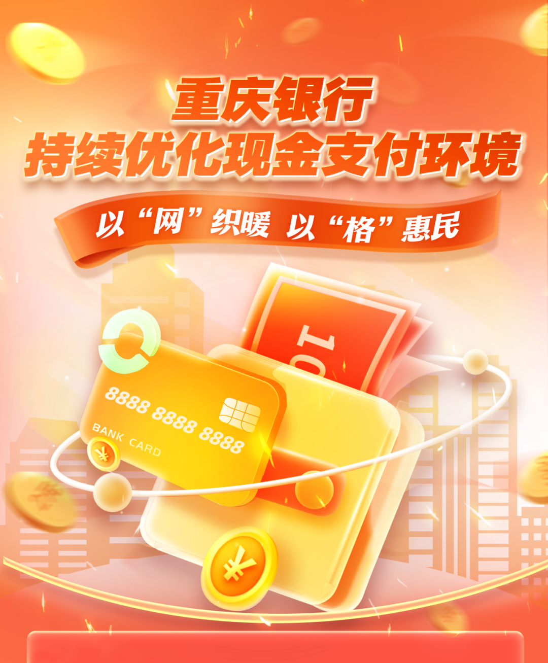 为深入践行“金融为民”服务理念,全面落实国家关于优化支付服务的决策部署,重庆银行以“匠心铸服务,细节暖民生”为理念,以“零钱包”工程为抓手,以数字化转型为引擎,以全场景服务为支撑,聚焦账户服务、现金支付、宣传推广等重点环节,构建“前瞻性部署+立体化宣传”服务体系,持续提升社会公众对现金服务的获得感、幸福感、安全感。