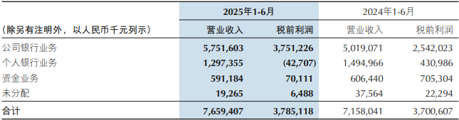 2025年1-6月,重庆银行个人银行业务的营业收入为12.97亿元,上年同期为14.95亿元;税前利润为-4270.7万元,上年同期为4.31亿元。