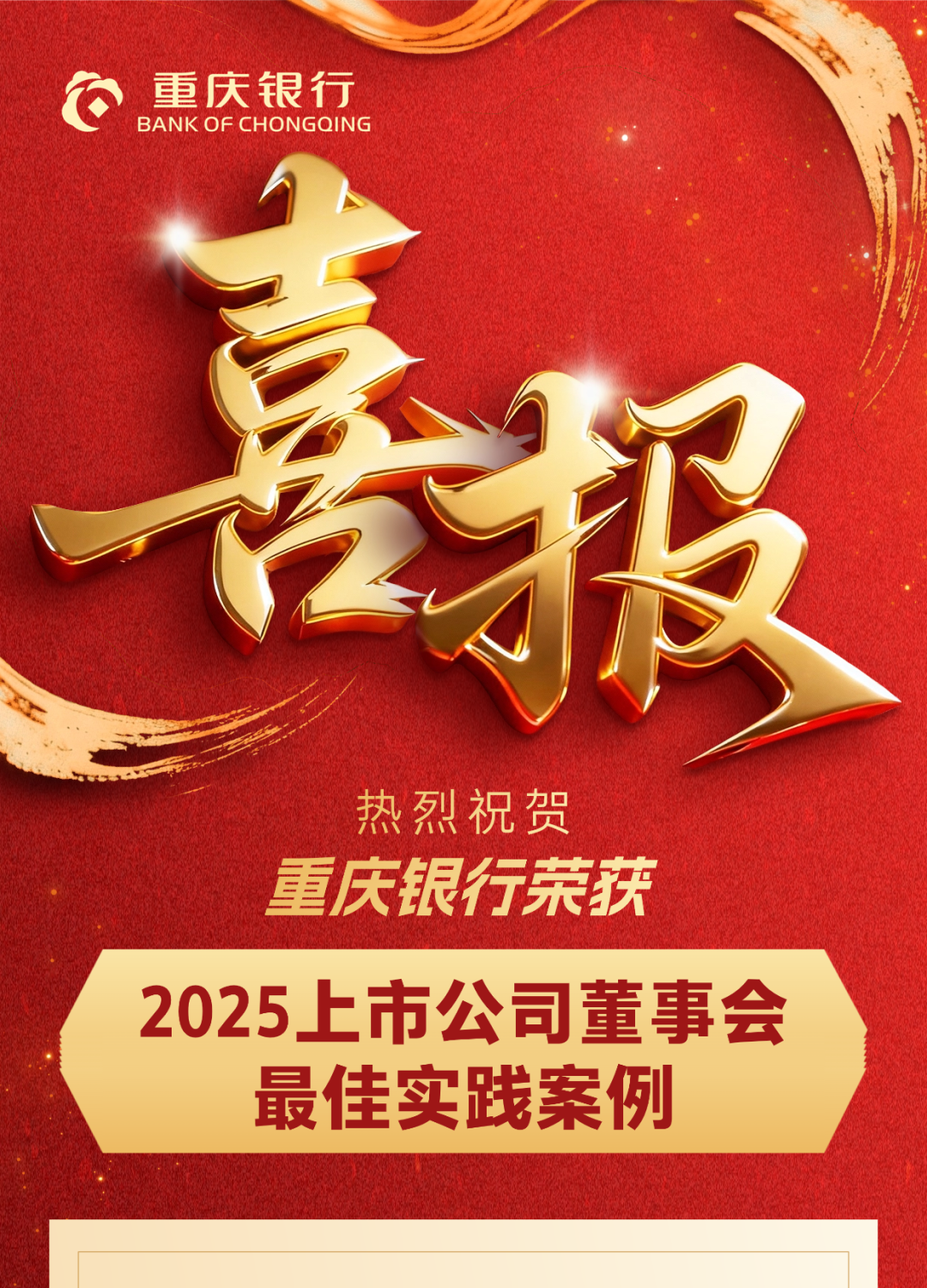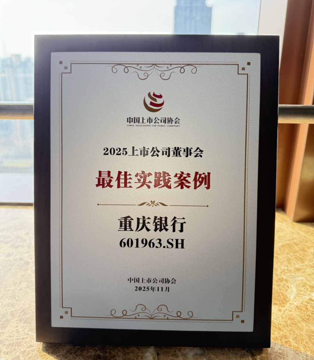 近期, 中国上市公司协会 公布了“2025上市公司董事会最佳实践案例”活动结果, 重庆银行 成功获评此次活动的最高等级荣誉——董事会最佳实践案例,是唯一一家获得此殊荣的重庆法人银行。