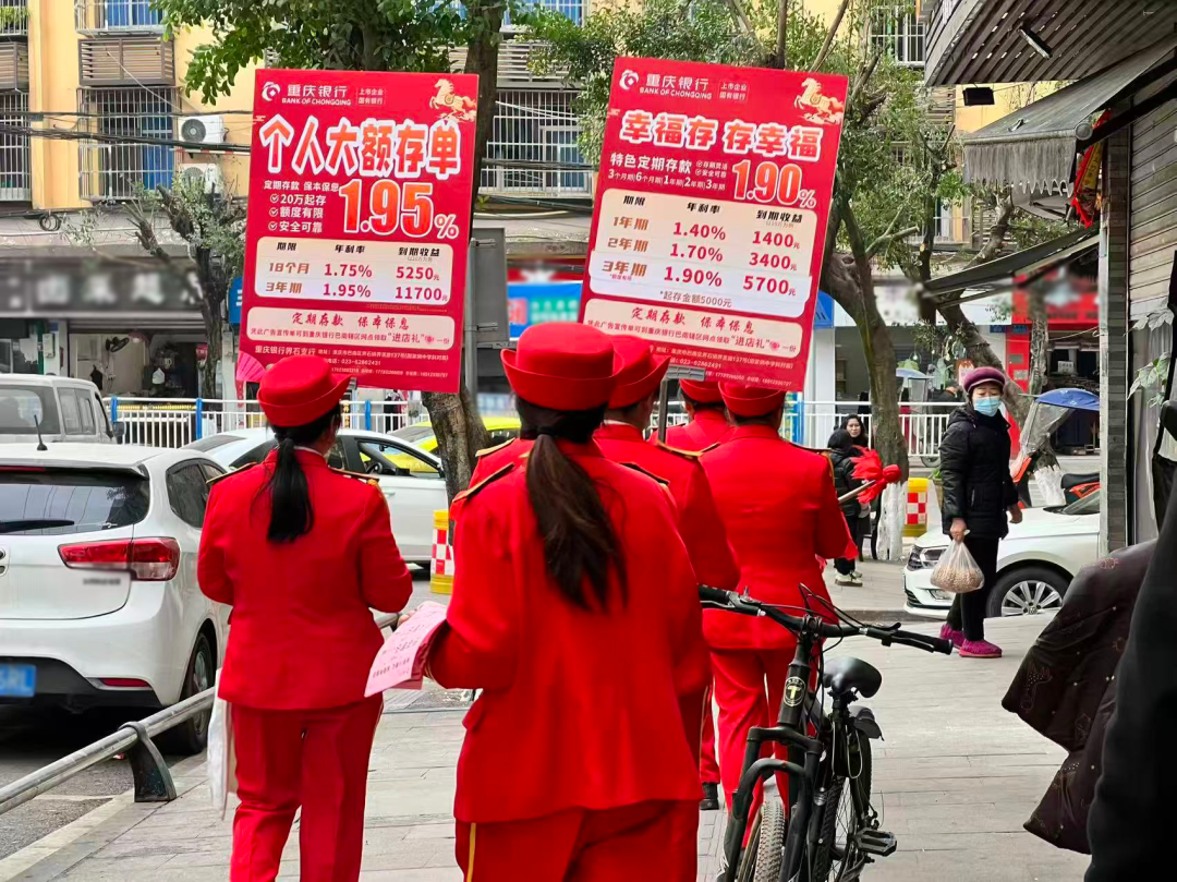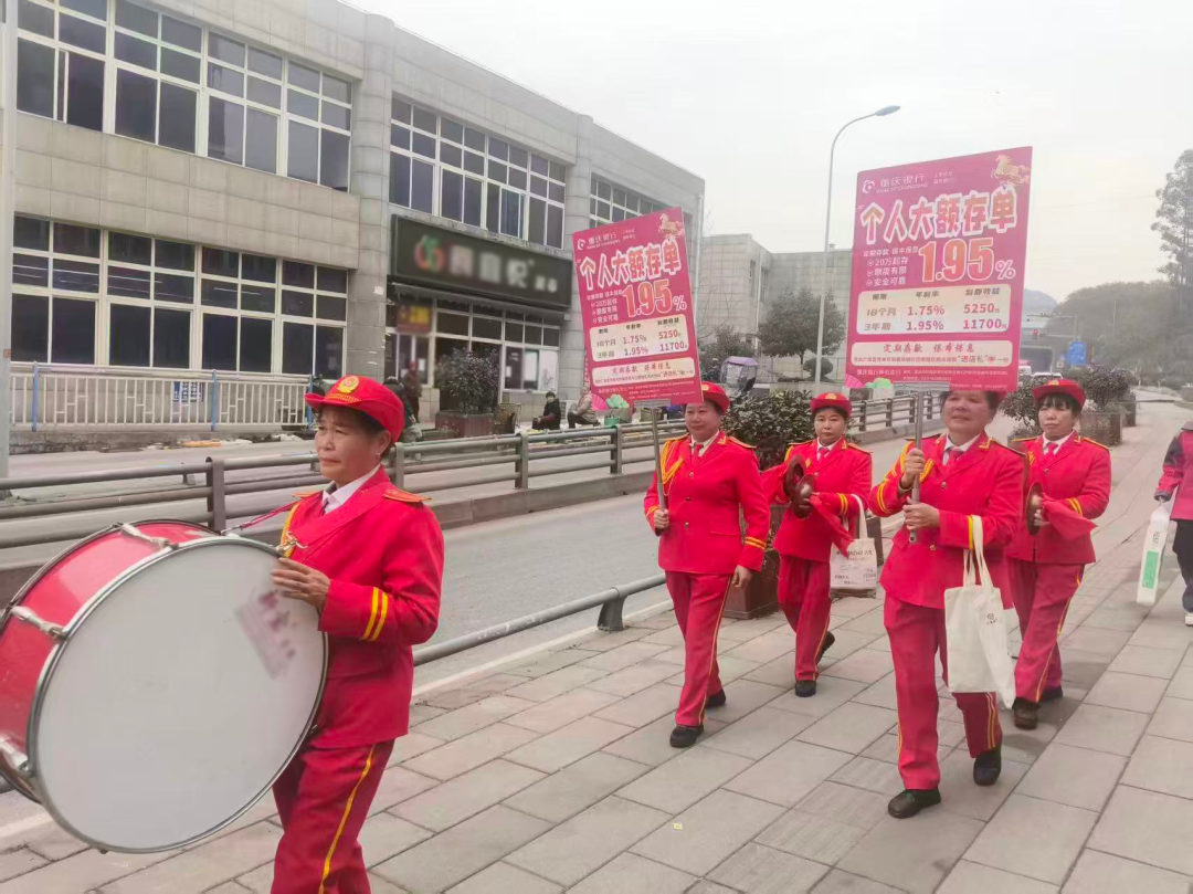 腰鼓声声,鼓点激昂。队伍穿梭于商业街区、居民楼宇,实现宣传范围的有效拓展。支行员工借着热闹氛围,详细向周边居民介绍存款产品、普及金融知识、发放宣传资料,并提供现场业务办理服务,在轻松互动中让金融服务真正走进群众、融入日常。
