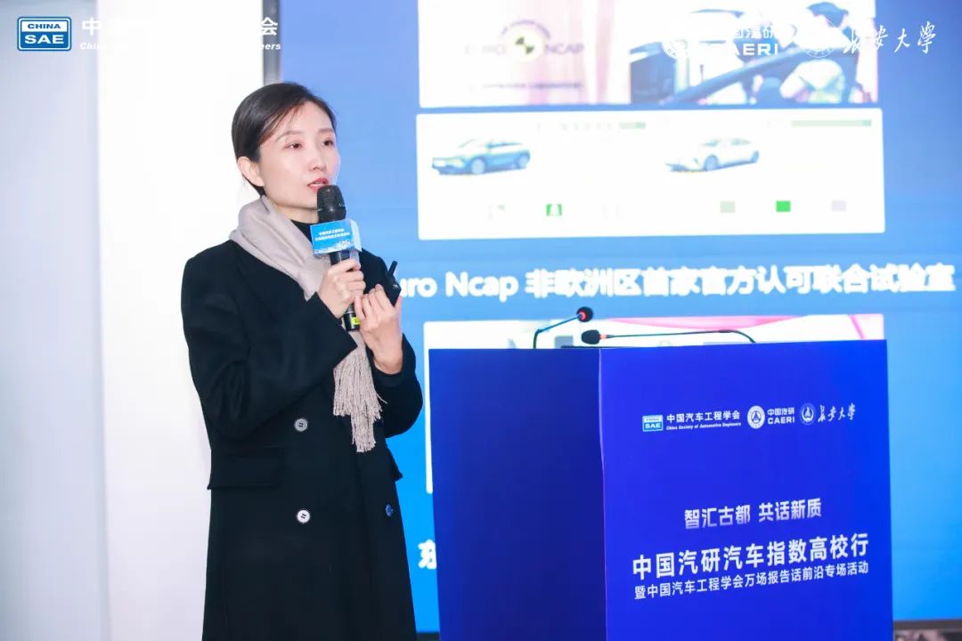 中国汽研总监、指数管理中心主任抄佩佩在致辞中表示,此次高校行作为汽车指数“科技向善”计划的重要组成部分,旨在发挥以下积极作用:一是面向高校师生,传递汽车测评前沿技术及趋势,对话汽车行业“国之栋梁”,联合培养未来汽车行业发展的中坚力量。二是希望依托汽车指数平台,加强校企合作交流,共研共创共享研究成果,共同推动中国汽车测评技术发展与进步。三是通过“技术讲堂+指数科技坊”的形式,让师生们通过丰富多彩的形式近距离感知和了解指数内涵,切实践行汽车指数“服务消费者买车用车”初心和使命。