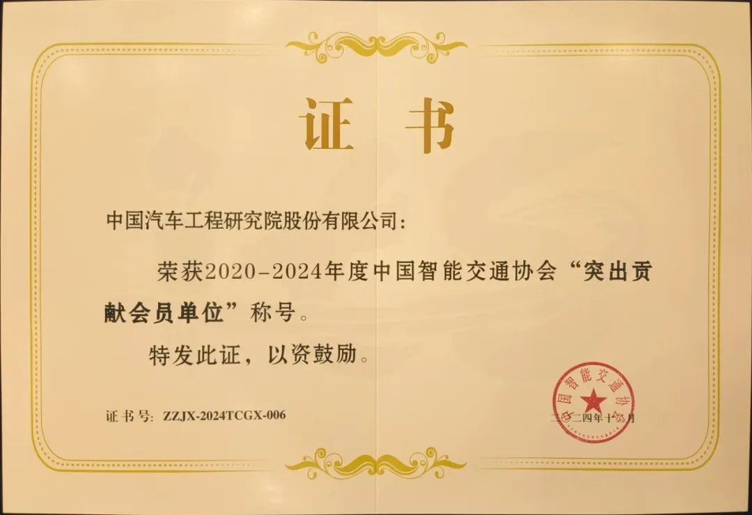中国汽研自2015年加入协会以来,一直与协会保持紧密沟通合作,并多次申报获得中国智能交通科学技术奖。本次获此称号,对中国汽研既是荣誉也是肯定,未来,中国汽研将持续践行央企使命,加强“政产学研用测”协同创新,深化与学会协会、汽车企业、高校、研究机构等的广泛合作,积极支撑中国汽车科技水平提升与产业高质量发展。