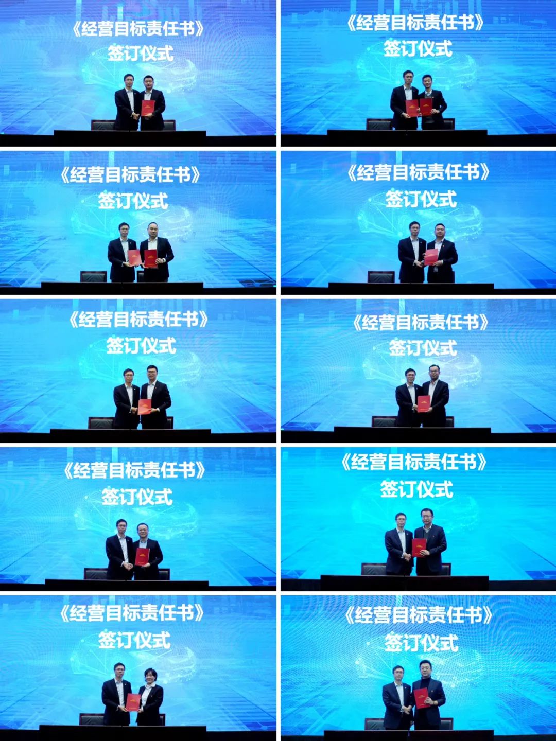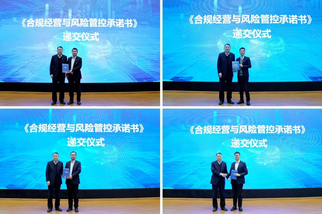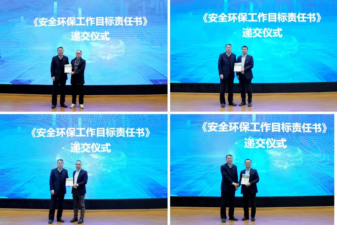 各单位负责人代表、职能部门代表上台递交《经营目标责任书》《合规经营与风险管控承诺书》和《安全环保目标责任书》。
