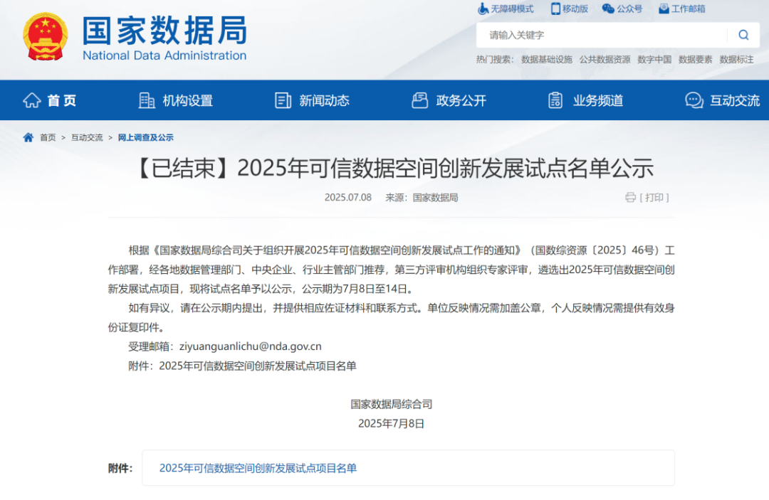 近日,国家数据局公布《2025年可信数据空间创新发展试点名单》,中国汽车工程研究院股份有限公司(以下简称:中国汽研)入选首批行业可信数据空间创新发展试点。