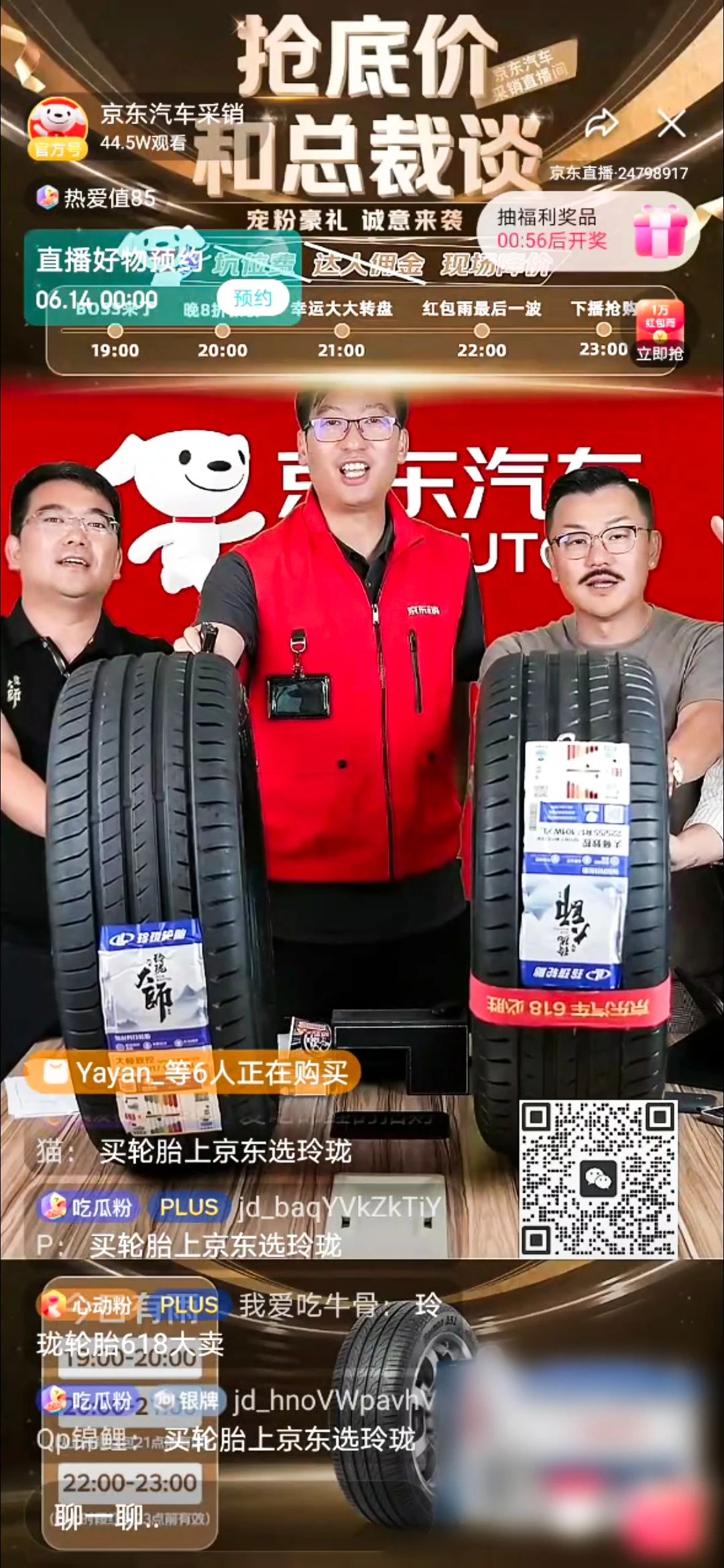在直播过程中,郭昆涛副总裁和京东汽车陈海峰副总裁向大家介绍了此次618活动的多重优惠措施,以及直播间购买的福利政策。同时,还为直播间的朋友带来了丰厚的礼品。在与粉丝的热情互动中,玲珑与京东两位总裁不断派发红包、背包、音箱、电热杯等众多宠粉豪礼,让粉丝朋友在享受购物乐趣的同时,也感受到了玲珑轮胎的满满诚意。