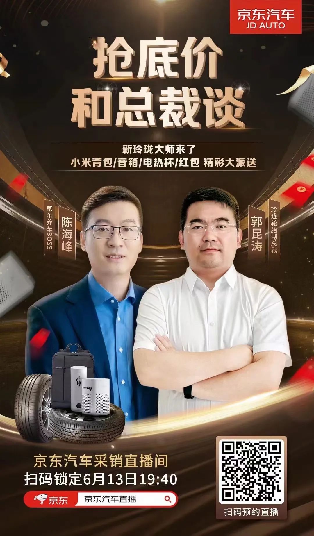 随着京东618购物节的狂欢浪潮来袭,玲珑轮胎京东自营旗舰店也迎来了一年一度的国货品牌日活动。6月13日晚,玲珑品牌日开启前,玲珑轮胎副总裁郭昆涛携手京东汽车副总裁、京东养车总经理陈海峰,梦想家ALI共同在京东汽车直播间为消费者带来了一场别开生面的直播盛宴!