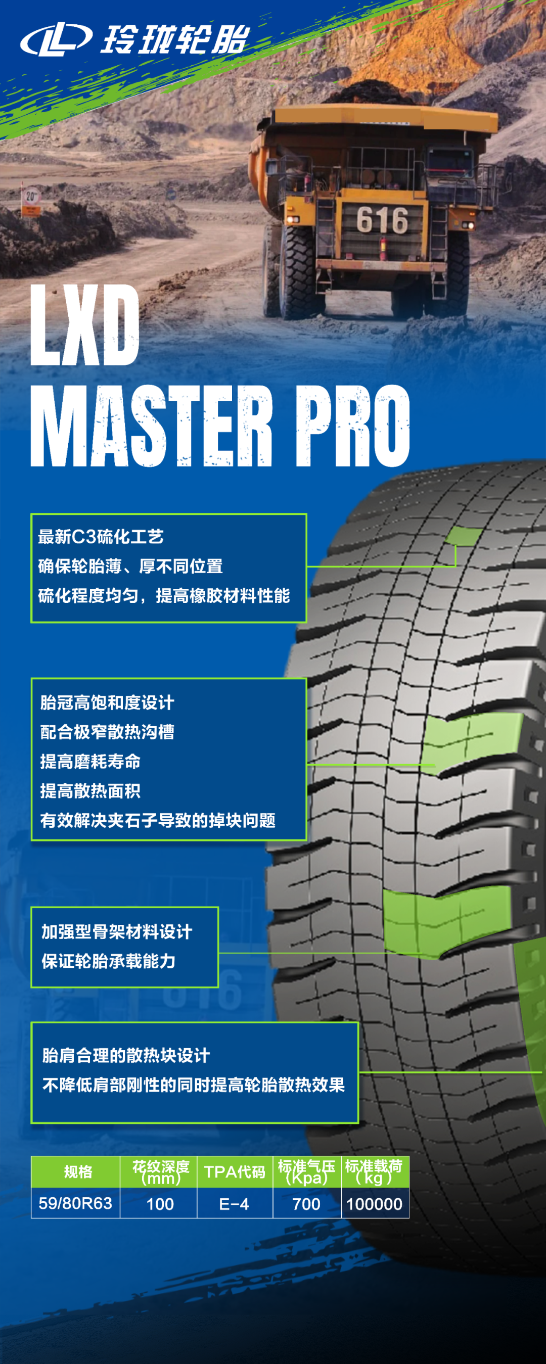 在工程机械产品领域,玲珑已深耕30载,积累了深厚的技术底蕴。1993年,公司第一条工程机械斜交轮胎下线;2004年,第一条工程机械子午线轮胎下线;2025年10月18日,自主研制的59/80R63巨型工程子午线轮胎下线,轮胎直径超过4米,单胎重量逾6吨,是目前全球尺寸最大的轮胎,标志着公司在工程机械产品上实现重大突破。