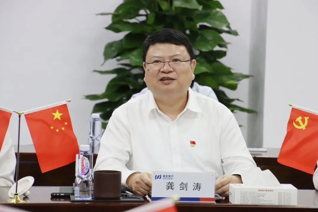 浦发银行海口分行党委书记、主持工作的副行长龚剑涛在致辞中介绍了浦发银行海口分行的发展历程、金融服务及党建工作。他表示,浦发银行海口分行将以此次战略合作及党建联建为契机,坚持党建引领,立足各自优势,加强和深化双方在业务和党建等方面的沟通合作,以党建联建为纽带,推动双方在业务合作、组织建设、品牌塑造等方面的共建共赢。