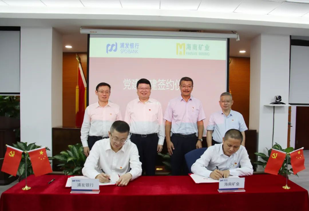 海南矿业党委副书记、纪委书记许达全与浦发银行海口分行党委副书记、纪委书记、副行长李前胜签订党建联建协议