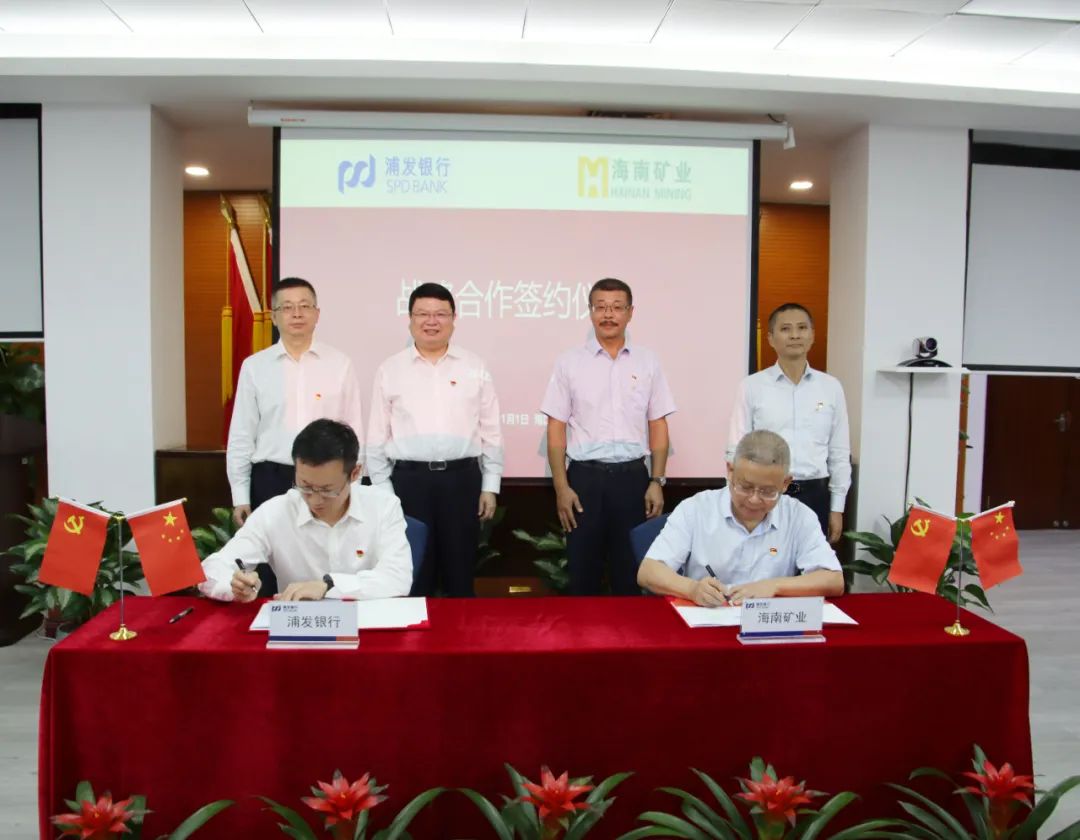 11月1日下午,海南矿业与浦发银行海口分行签署战略合作协议及党建联建协议,双方将建立长期战略合作关系,实现优势互补、合作共赢。