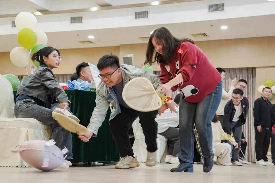 在破冰环节,青年员工通过富有幽默感和鲜明特色的自我介绍,增进彼此了解。在随后的互动游戏中,来自公司各个单位的60名青年员工分成4支队伍进行竞赛,先后完成团队花样姿势合影打卡、“青春N种旋律”才艺展示、“拳王争霸”猜拳比赛、“最强男团”俯卧撑比赛等多项游戏,从而获得团队积分,积分最多的队伍最终从比赛中胜出,并赢取纪念奖品。各队成员为了团队荣誉,默契协作,各显其能,在游戏中加深彼此了解,增强团队凝聚力。