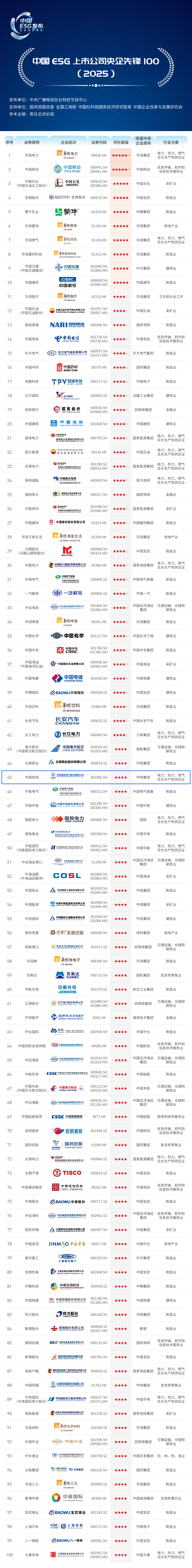 近日,中央广播电视总台财经节目中心联合国务院国资委、全国工商联、中国社科院国有经济研究智库、中国企业改革与发展研究会等举办的“中国ESG(企业社会责任)发布”活动在京举办,正式推出《2025年度ESG行动报告》。中国核电(股票代码:601985)成功入选“中国ESG上市公司先锋100(2025)”及首次增设的“中国ESG上市公司央企先锋100(2025)”双榜单,充分彰显中国核电在践行可持续发展理念、引领行业高质量发展中的标杆作用。