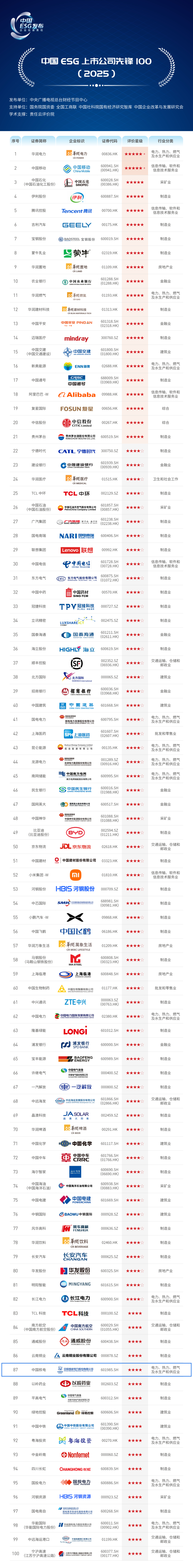 本次发布的《2025年度ESG行动报告》实现五大评价体系升级,对标11个国内外标准指引,以截至2025年4月30日的A股与港股6508家中国上市公司为样本空间,精选1145家企业作为评价对象,最终筛选形成先锋榜单;其中首次增设的央企专项榜单,以456家中央企业控股上市公司为评价样本,填补了央企ESG专项评价空白。榜单的发布旨在构建中国特色ESG评价坐标系,发挥头部企业示范效应,推动ESG理念深度融入企业发展战略。