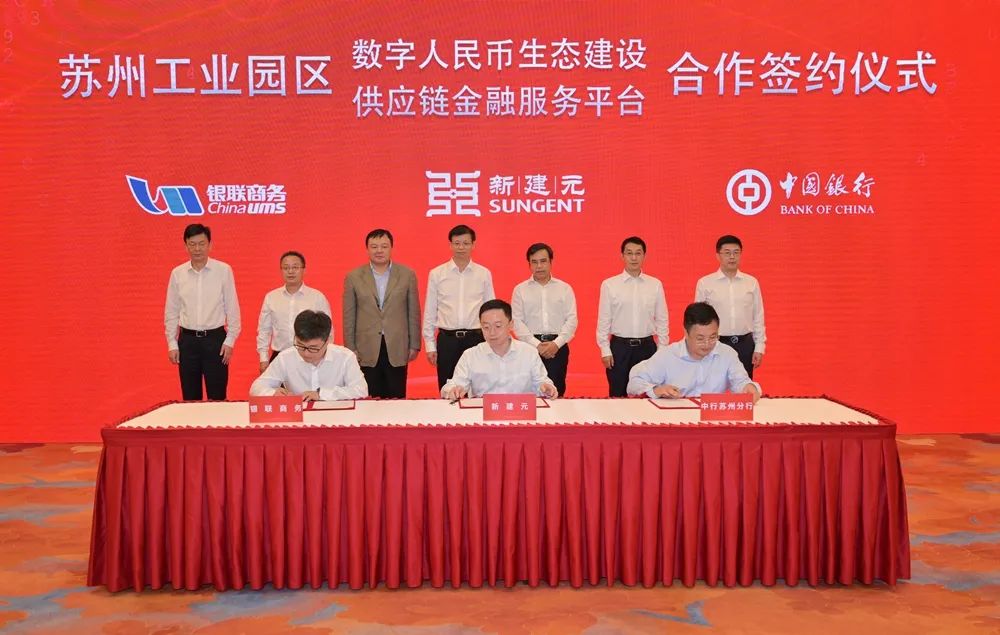 仪式上,苏州工业园区数字人民币生态建设及供应链金融服务平台项目也完成签约,将新建元控股集团丰富商业载体和数字技术优势,与中国银行金融资源以及银联商务渠道、运营资源有效联结、充分融合,重点打造数字人民币民生消费生态体系,加大对中小企业发展的支持力度。
