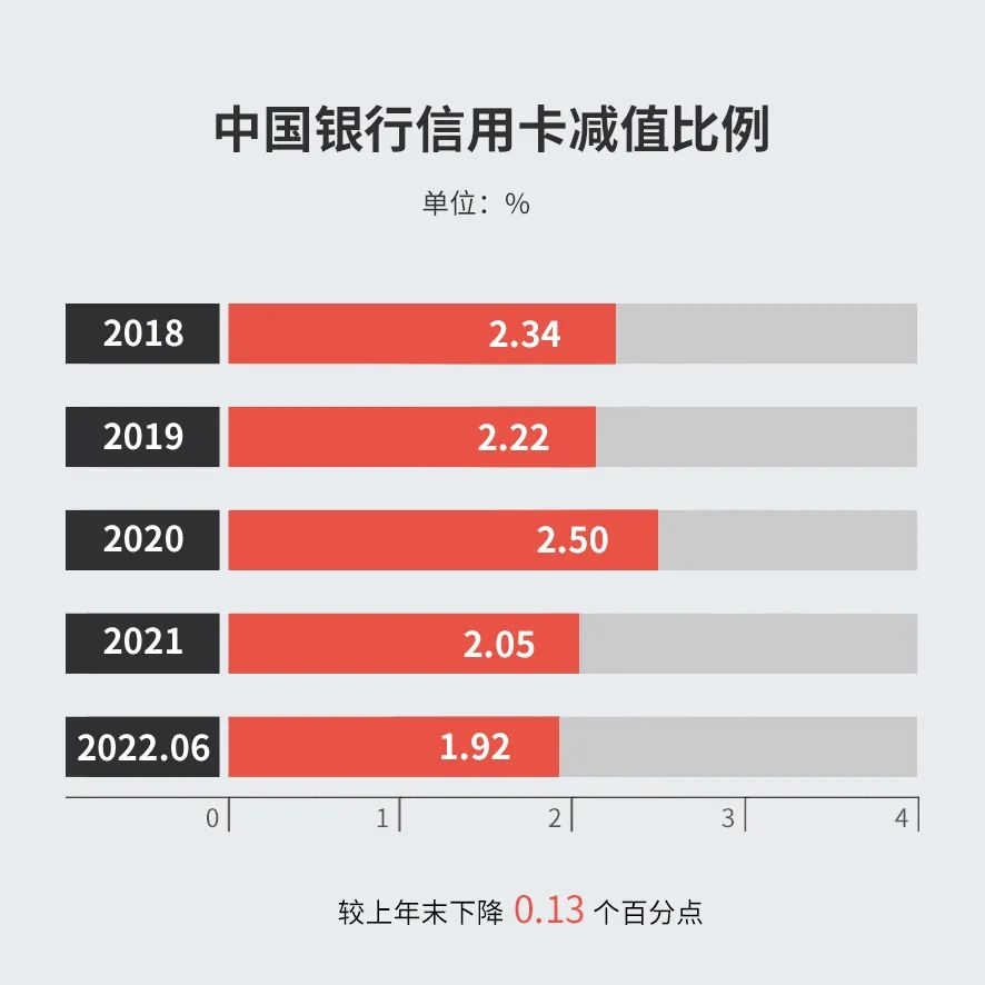 截止2022年6月末,中国银行信用卡减值贷款率1.92%,较上年末下降0.13个百分点;