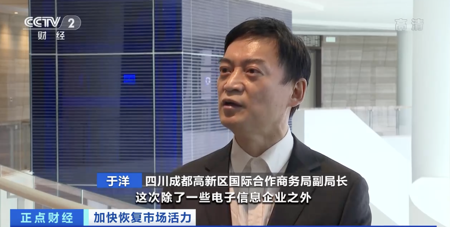 四川成都高新区国际合作商务局副局长于洋:这次除了一些电子信息企业之外,还有一些跨境电商的企业、一些贸易公司和德国的一些专业的、细分领域的隐形冠军(企业)去谈一些合作,谈一些订单。意向的订单是1.2个亿,订单虽然小,但是合作的深度比较深。