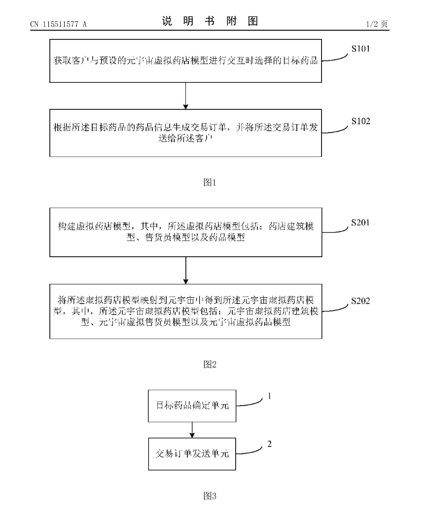 摘要显示,本发明实施例公开了一种基于元宇宙的药品销售方法及装置,该基于元宇宙的药品销售方法具体包括:获取客户与预设的元宇宙虚拟药店模型进行交互时选择的目标药品;根据所述目标药品的药品信息生成交易订单,并将所述交易订单发送给所述客户。