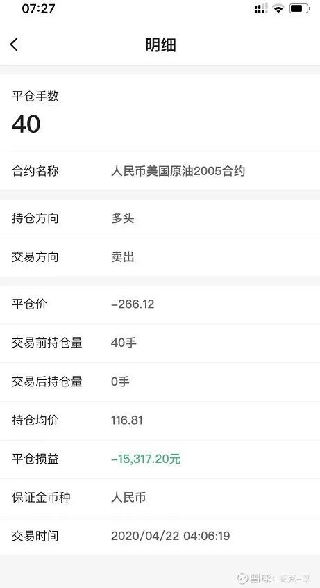 比如,140块钱一桶的油,跌到了10块钱,如果你在里面投了140万,一晚上变成了10万。但是如果按照-37.63美元/桶的价格结算,如果你在里面投了140万,你要倒欠267万,或者说亏了逾400万,亏损率近300%。(不考虑中行2%的手续费)