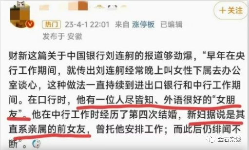 文章提到,刘连舸道德败坏,家风不正,对亲属失管失教,不禁让人想到他的风流韵事。