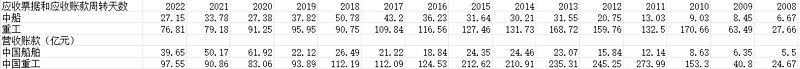 从应收账款周转天数看,重工的周转天数明显长于中船,并且重工找11年~15年应收账款剧增,一度达到过274亿的水平。我想如果要给重工找一个估值水平不及船舶的理由,应收账款较大应该是比较合适的。