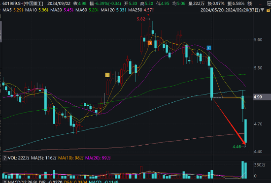 9月19日,中国船舶、中国重工公司股票迎来复牌。然而,此次复牌后公司股价似乎并未迎来暴涨,中国重工更是股价更是复盘后出现两连跌。中国重工目前股价为4.5元/股,较复盘前跌幅近10%。这是否是投资者对相关方案在用脚投票呢?