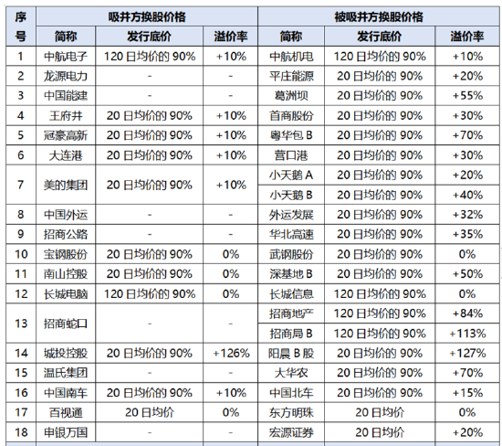 值得一提的是,上述吸收合并案例中,在股价表现与中国重工重组似乎呈现出较大反差。