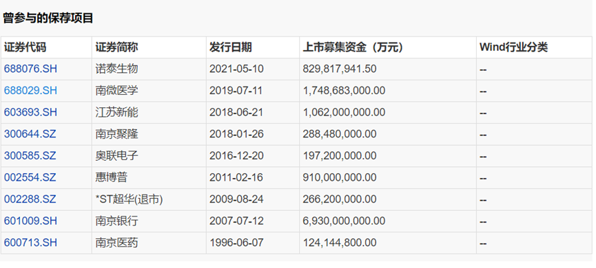 2016年保荐的奥联电子因董事长履历造假、敷衍问询被证监会立案调查,被罚750万元。同年保荐的新开普定增因未及时披露一致行动关系收警示函。昊志机电创业板上市及定增后,因高管操纵股市、信披违规等屡遭处罚。2017年未识别神雾节能财务造假。2018年双林股份重组后5次信披违规2019年大烨智能重组因关联方披露缺失收警示函。