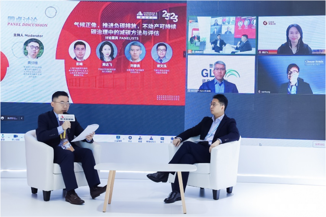在圆桌讨论环节,戴德梁行可持续发展服务平台联席主管黄衍维、中金公司固定收益部执行总经理黄达飞、气候债券倡议组织中国区经理谢文泓、普洛斯资产运营服务ESG负责人刘春良及上海环境能源交易所碳中和运营中心负责人彭峰共同就减碳效益、建筑负碳排放、碳交易市场等话题进行了研讨。大中华区租户研究主管Shaun Brodie随后就“气候正像,推进负碳排放,不动产可持续碳治理中的减碳方法与评估”主题发表了演讲。