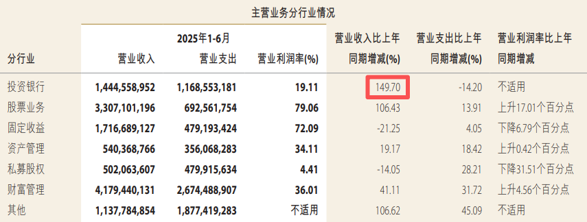 半年报显示,中金公司2025年上半年投行业务迎来爆发式增长,收入同比激增149.70%,达到14.45亿元。