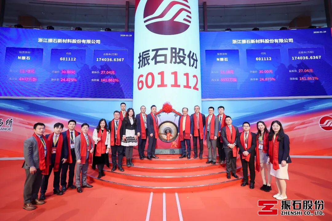 1月29日,浙江振石新材料股份有限公司(以下简称“振石股份”,股票代码:601112.SH)正式在上海证券交易所主板挂牌上市,募集资金规模约29.19亿元。中金公司担任本次项目的独家保荐机构和独家主承销商。