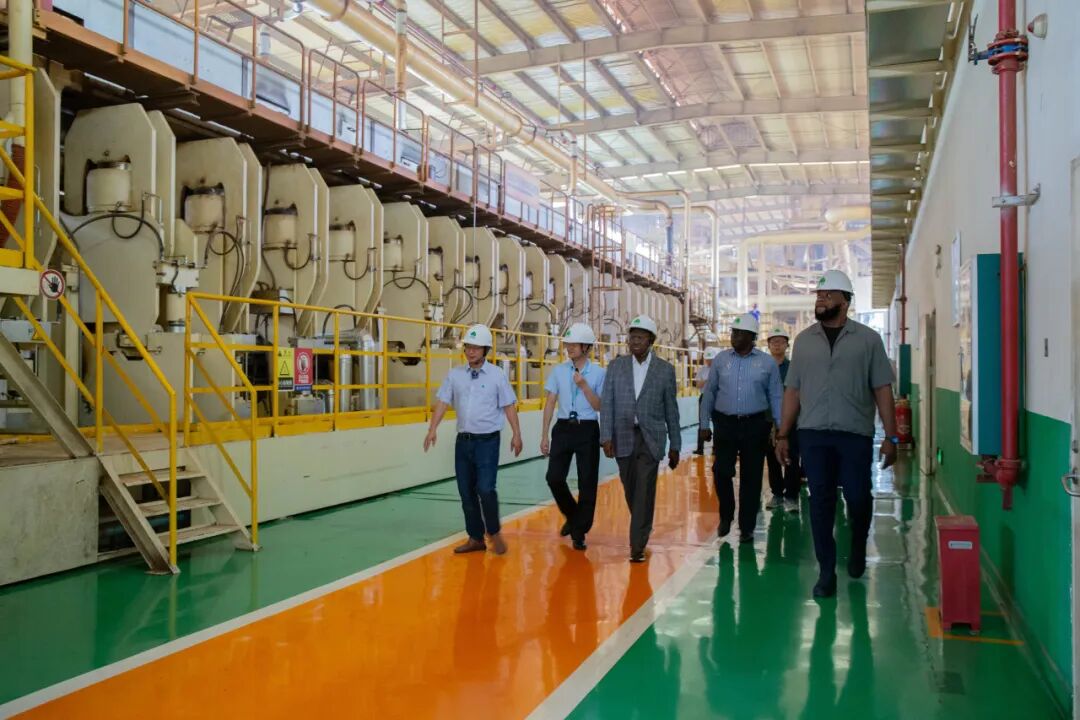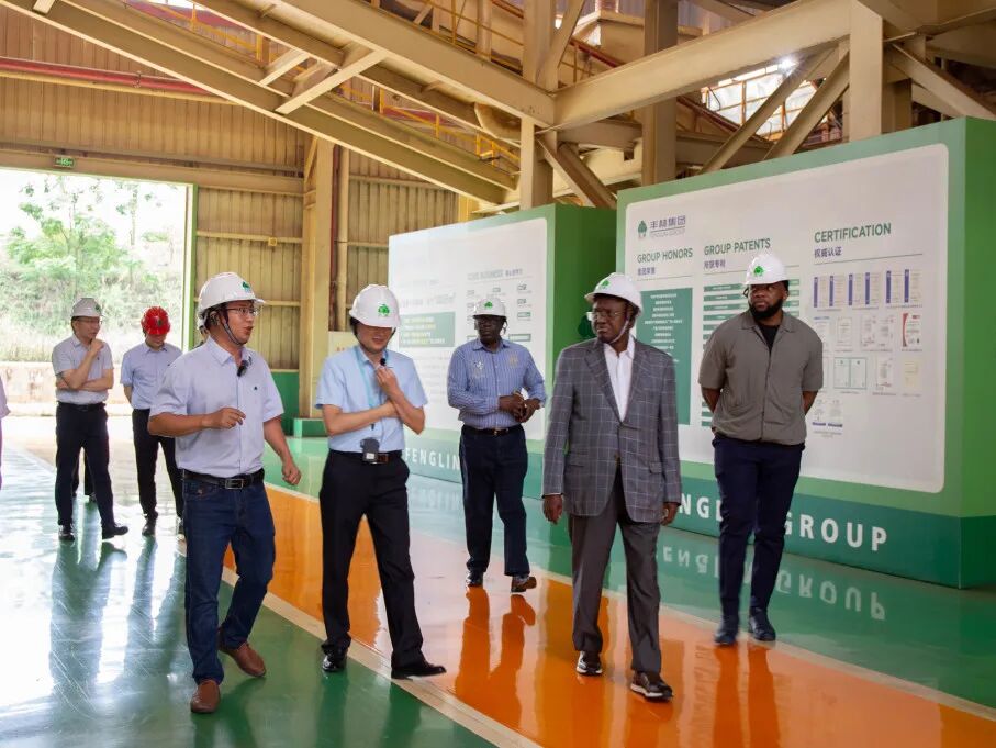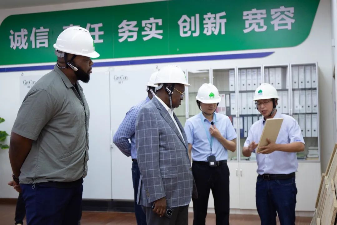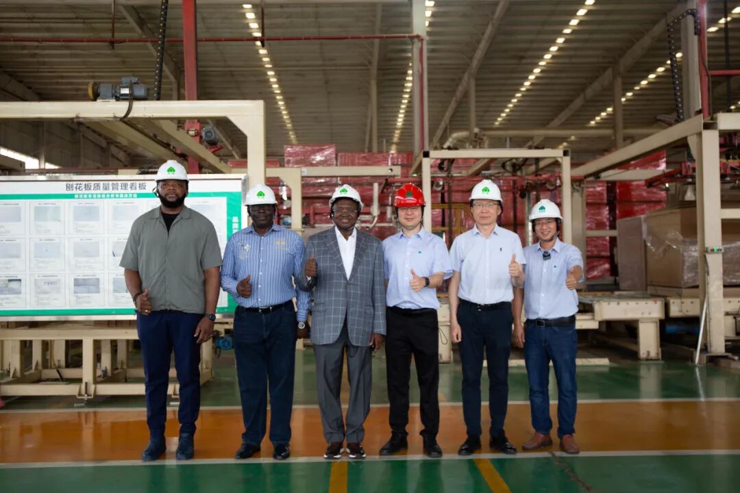 为落实中非合作论坛北京峰会成果,深化国际交流合作,在南宁市外事办公室组织下, 5 月 8 日,刚果(金)驻华大使巴卢穆埃内一行莅临丰林集团南宁工厂参观考察。丰林集团副董事长刘念出席接待,南宁工厂常务副总经理吴治超陪同讲解。