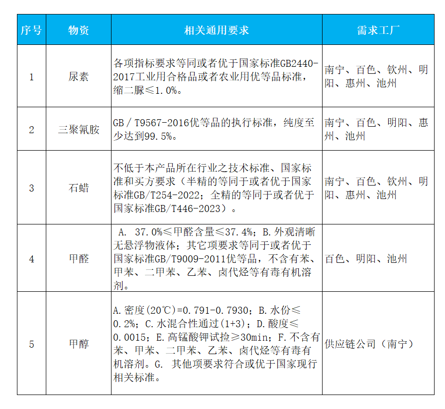 (一)国内合法注册(指按国家有关规定要求注册的)具备有效的营业执照,并具备相应服务资质,注册资本不低于100万人民币的企业。其中尿素、石蜡、三聚氰胺、甲醛、甲醇供应商注册资本不低于500万元。